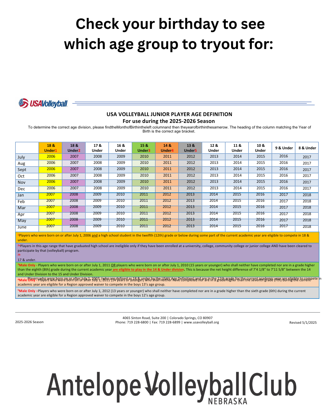 Please double check the age sheet before registering to see which age group to tryout for! There may be Grade Waiver exceptions for 9s-14s, please reach out with questions on this.